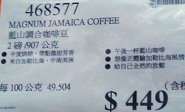 上面寫著"調合" 表示他是混合豆,並非完完全全是藍山咖啡豆
